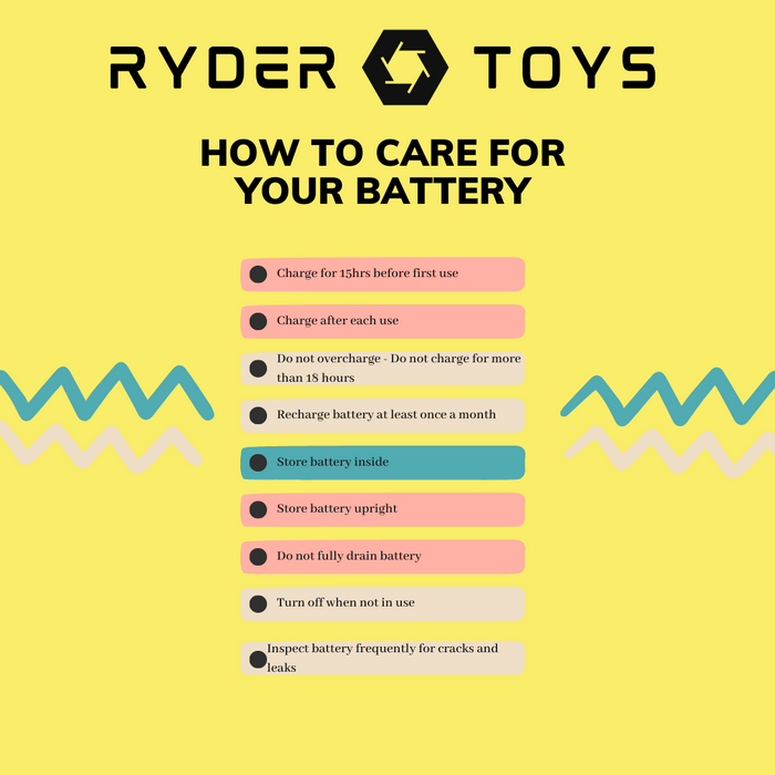Learn how to properly care for the battery and extend the run time of your new Ryder Toys electric ride on kid car. ...